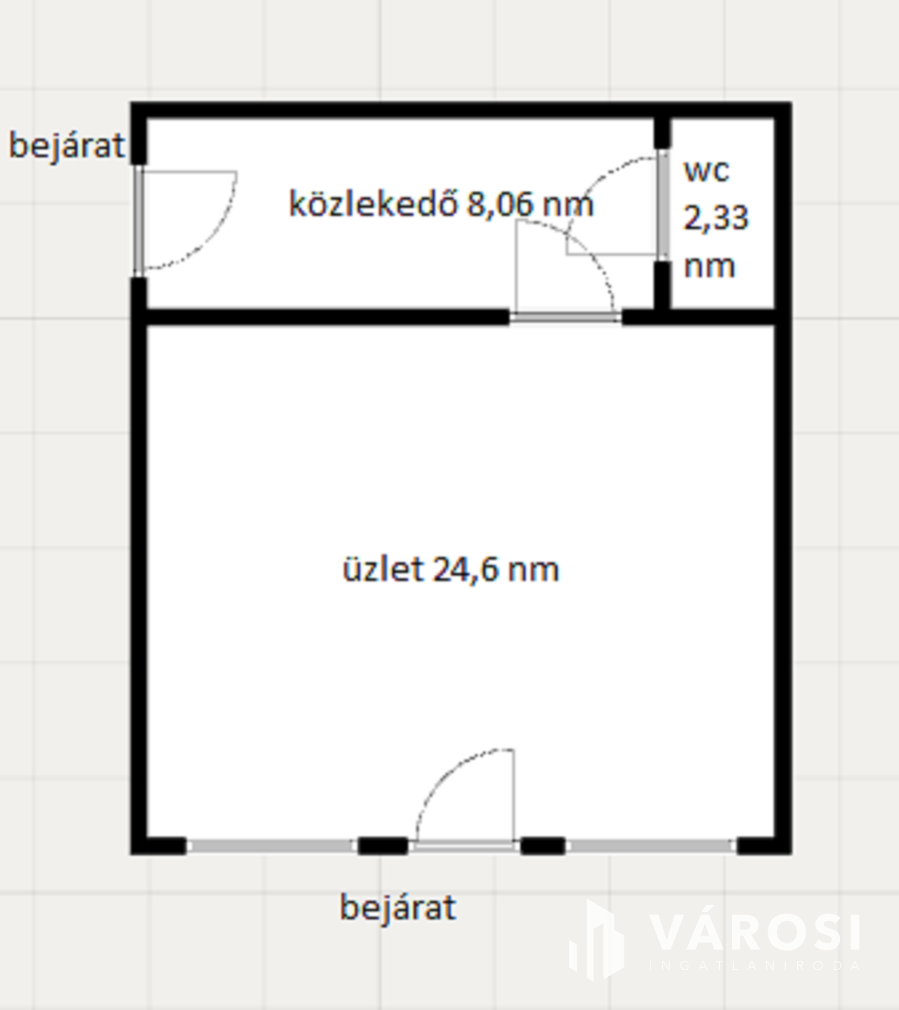 A kisebbik üzlet üzlettérből közlekedőből és wc-ből áll.