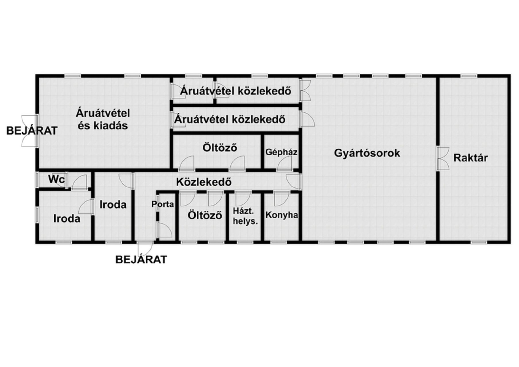-1000m2-es élelmiszer gyártóüzem a hozzá tartozó raktárral, öltözőkkel, szociális helységekkel