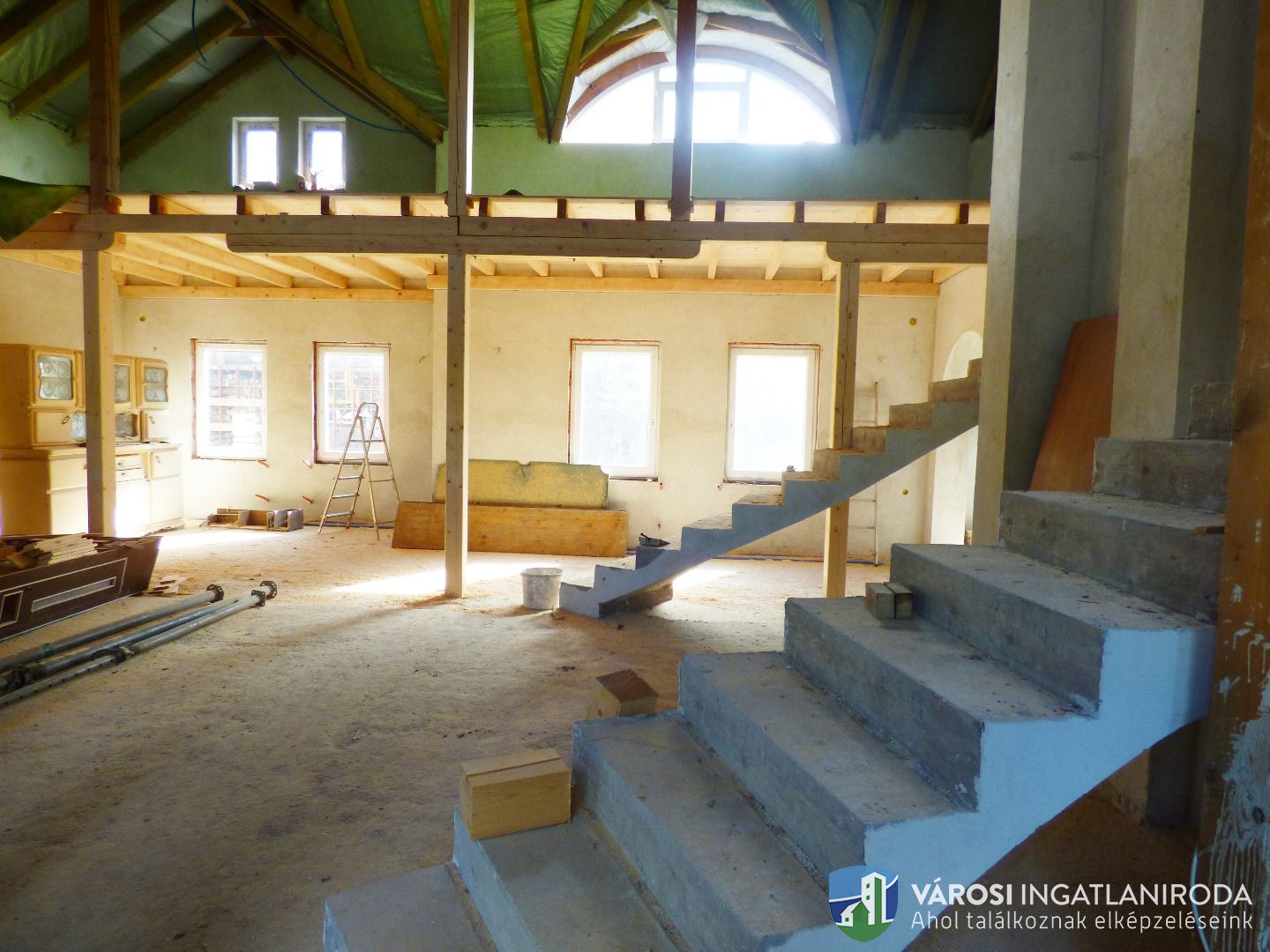 A területből 9278 nm részben lekerített építési terület, rajta 65 %-os készültségű 342 nm-es családi házzal.