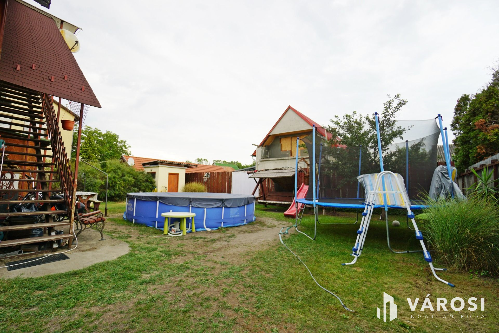 - Két autóbejáró, több felszíni beálló + könnyűszerkezetes garázs