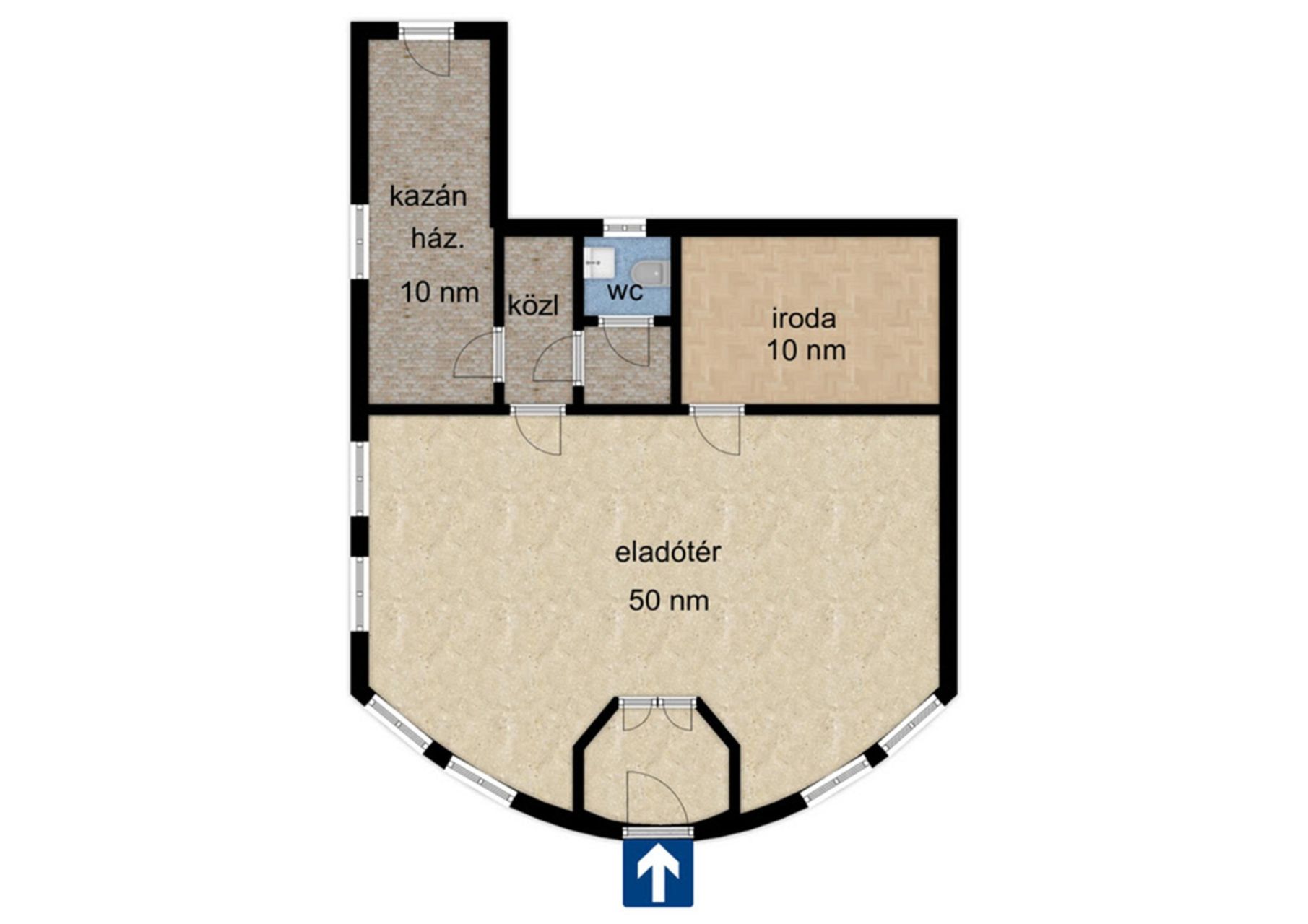 - Nagy eladótér,külön iroda helyiség,WC,raktár.