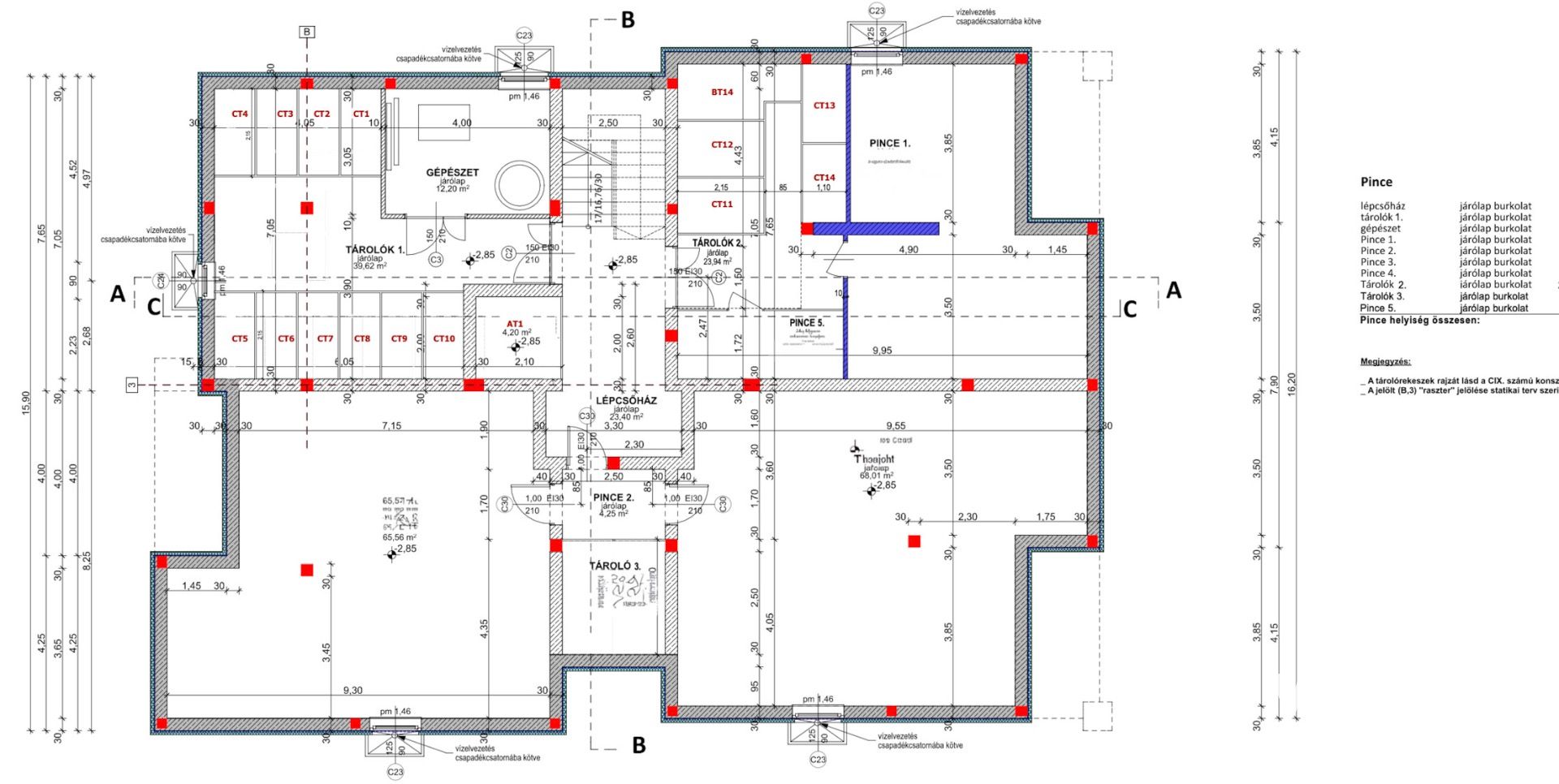 Tulajdoni lapja rendezett, külön helyrajzi számon van nyilvántartva mindegyik helyiség "pince" besorolással.