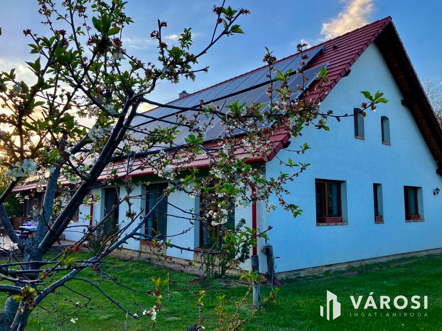 - **Állapot**: Kiváló, az ingatlan alacsony fenntartási költségekkel rendelkezik, melyet a napelem, elektromos kazán, padlófűtés, fa kazán és cserépkályha biztosítja.