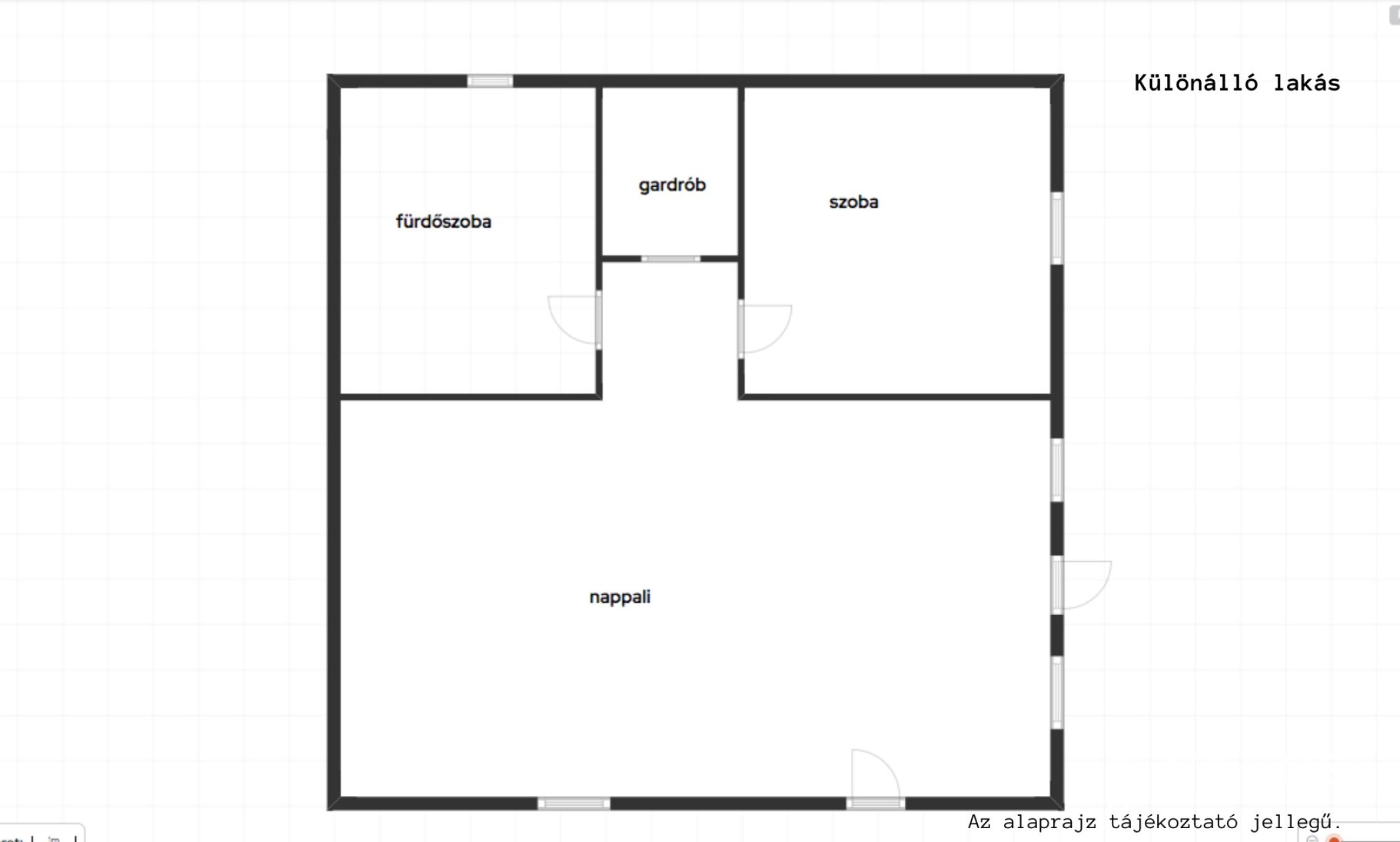 - Elosztás: Amerikai-konyhás nappali, + 1 szoba, fürdő