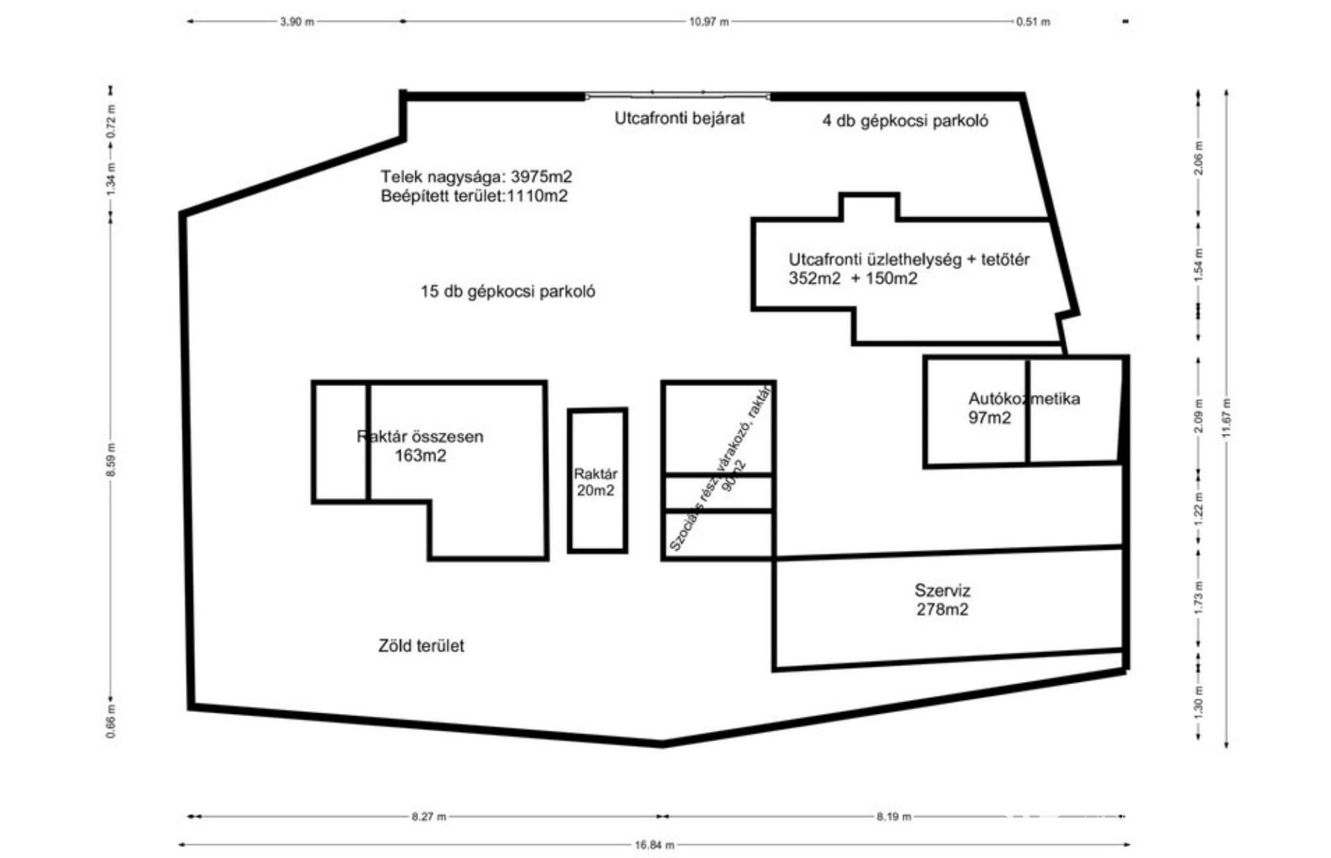 Kozmetika: 2 külön bejárattal rendelkező, tégla és könnyűszerkezetes épület, 2 gépkocsi azonos idejű takarításár alkalmas. (Jelenleg bérbe adva)