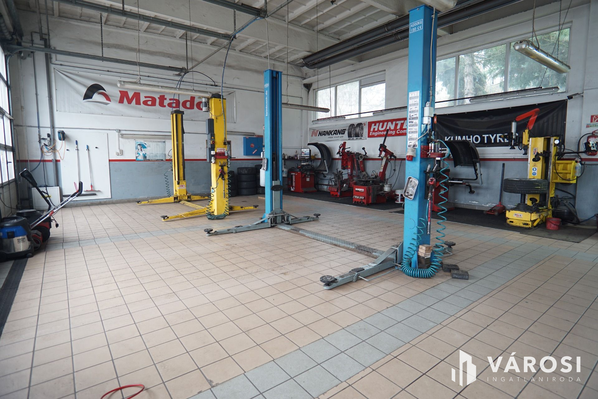 Szerviz: 4 külön beállóval rendelkező tégla épület, belső irodával, tárolóval, alkatrészmosóval, galériával valamint forgácsoló-javítórésszel. (Tulajdonos által használva).
