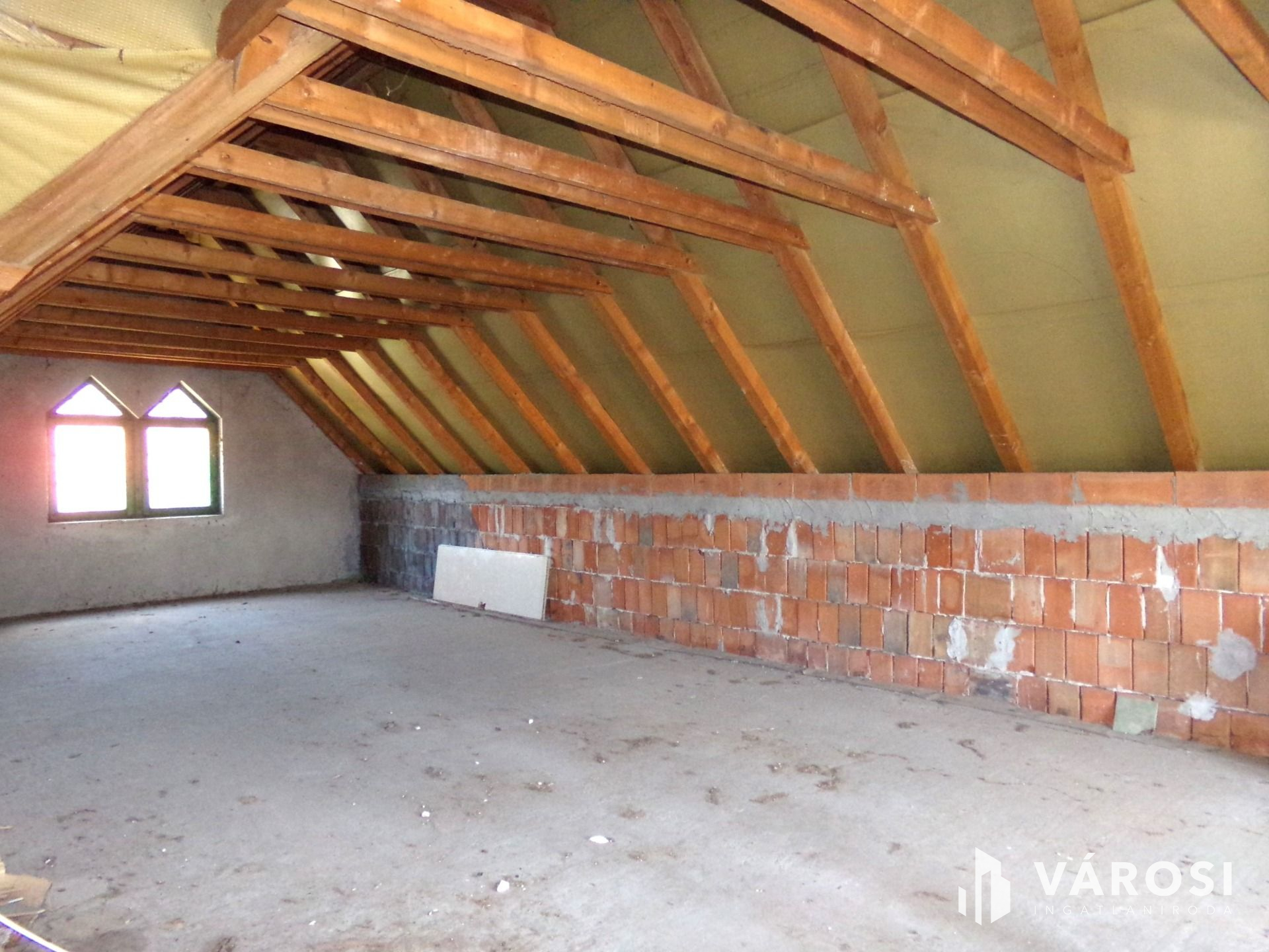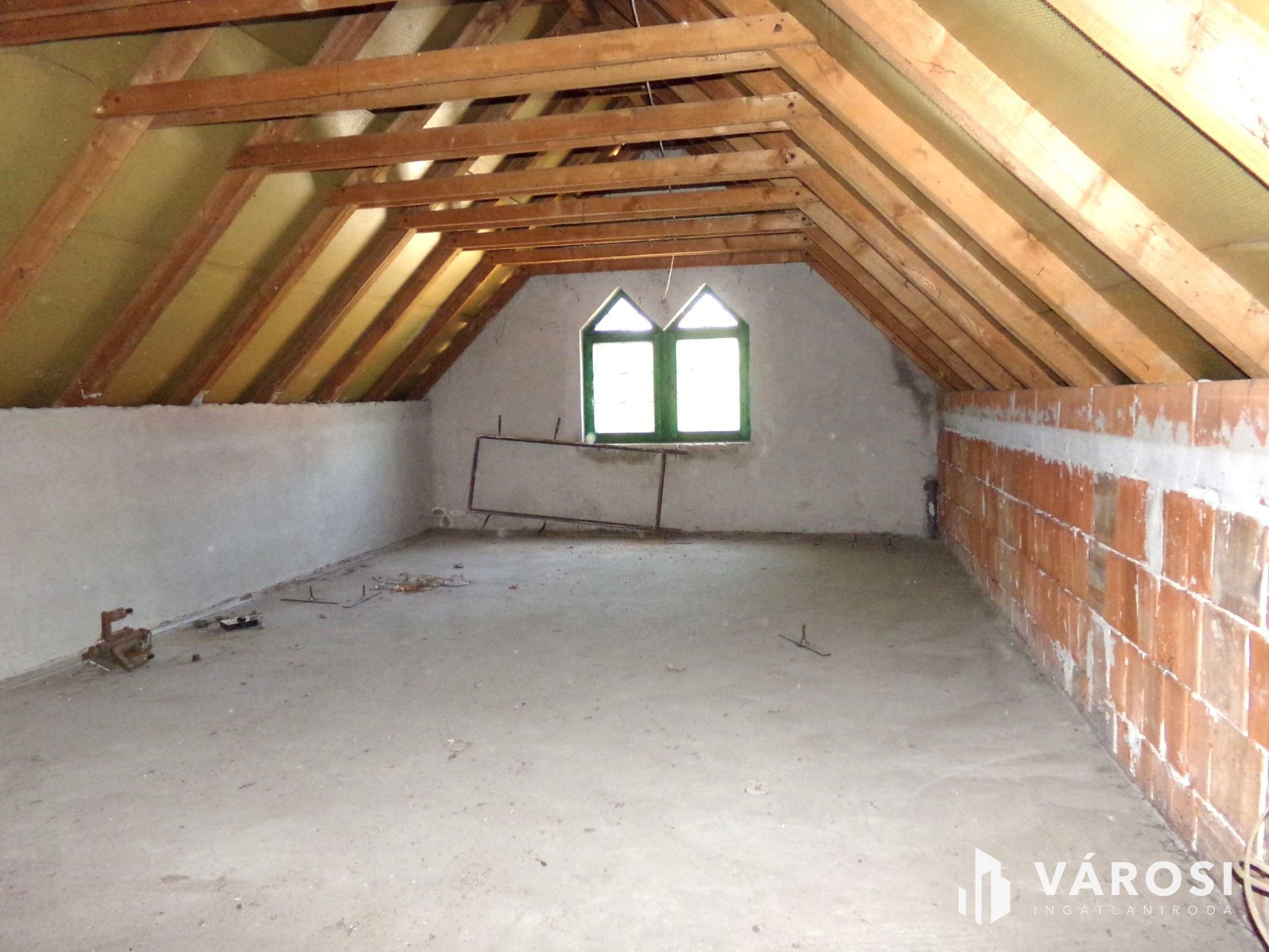 A tetőtér jelenleg a képeken látható állapotban van. Itt kialakíthatóak a működési profilba illő, kiadható vendégszobák, irodák.