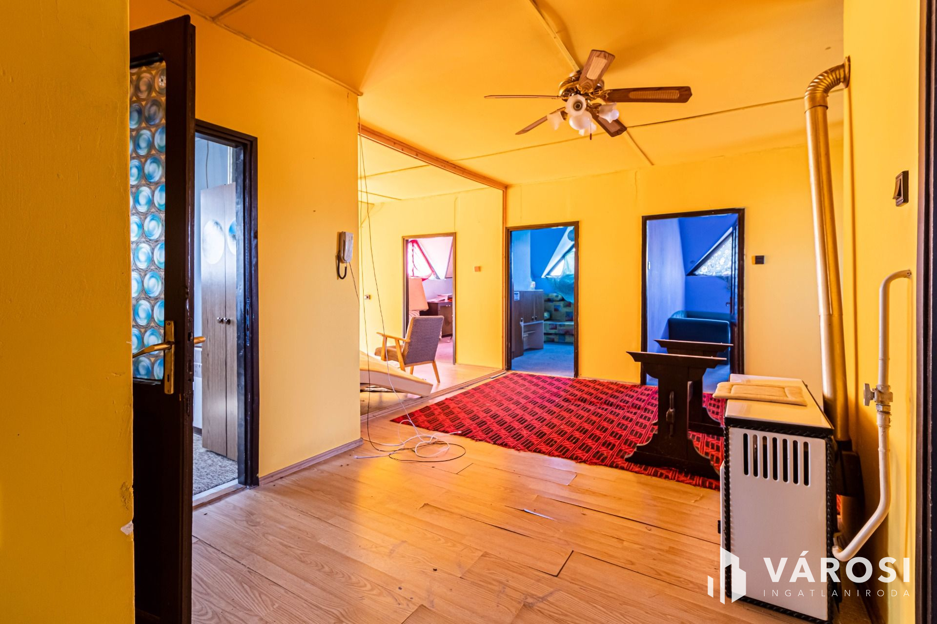 Az alsó szinten található három szoba egy fürdőszoba valamint egy étkező konyhával . A felső szinten négy szoba egy amerikai konyhás nappali, fürdőszoba és egy tároló helység . az ingatlan felső szintje teljesen külön bejáratú így alkalmas két generáció lakhatására vagy akár apartmanozásra is valamint külön elmérő órákkal rendelkezik, így könnyen elszámolható a fenti fogyasztás A tető is jó állapotú az eresz csatornák újak így azzal se lesz gondja leendő tulajdonosának. Az ingatlan fa nyílászárókkal rendelkeznek amelyek redőnnyel vannak ellátva. Az otthon melegét konvektorok biztosítják a meleg vizet villanybojler állítja elő. A felső szint esztétikai felújítást igényel.
