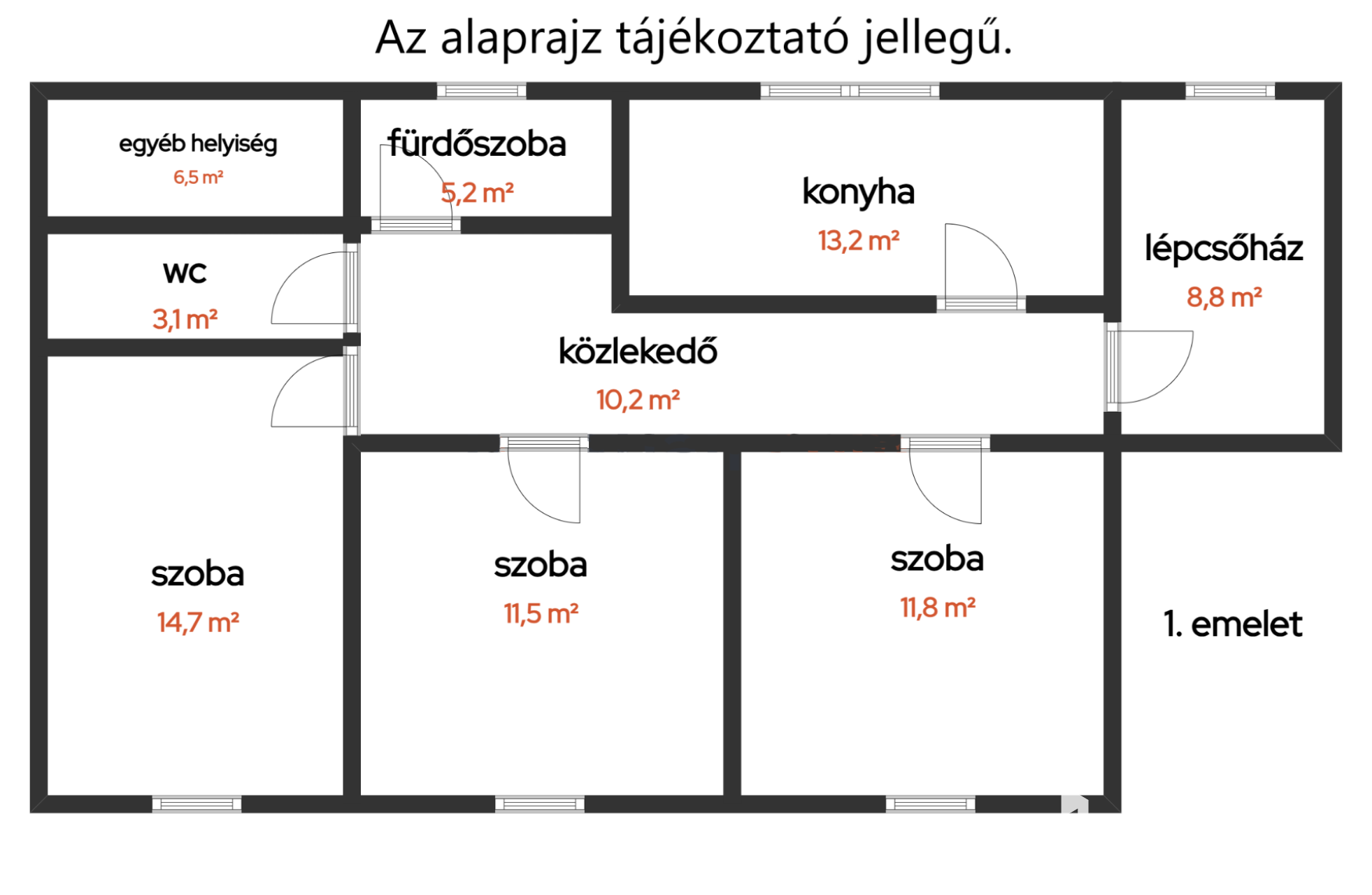 A ház jelenleg 2 tágas szobából, nappaliból, külön fürdőből és WC-ből áll. Esztétikai felújítást igényel, viszont pont ez ad lehetőséget arra, hogy az új tulajdonos saját elképzelése szerint alakítsa ki.