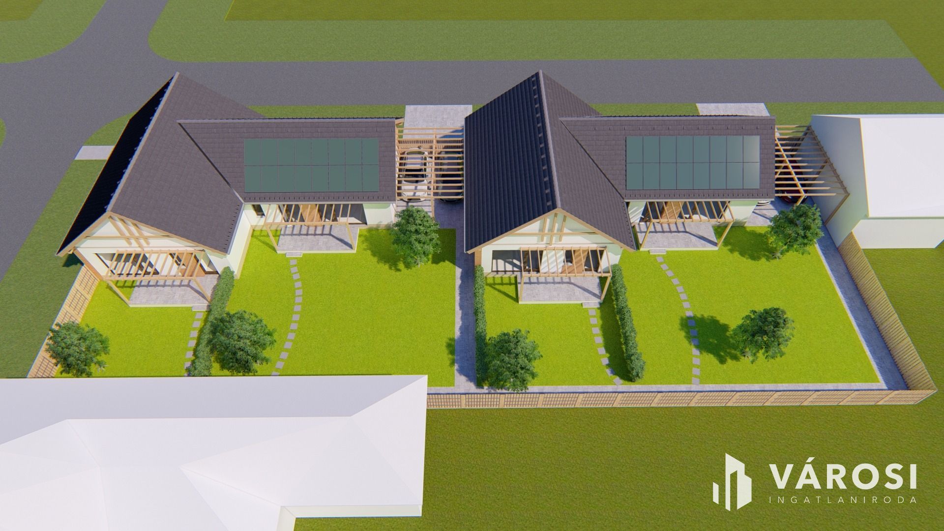 - A gépkocsi beállókhoz, illetve a teraszokhoz csatlakozva a két kocsibeállónál