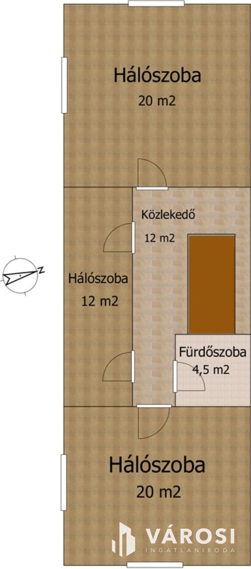 Tér minden családtagnak: két szint, külön nyíló szobák, közös konyha–étkező, és a Malom-tó pár perc sétára.