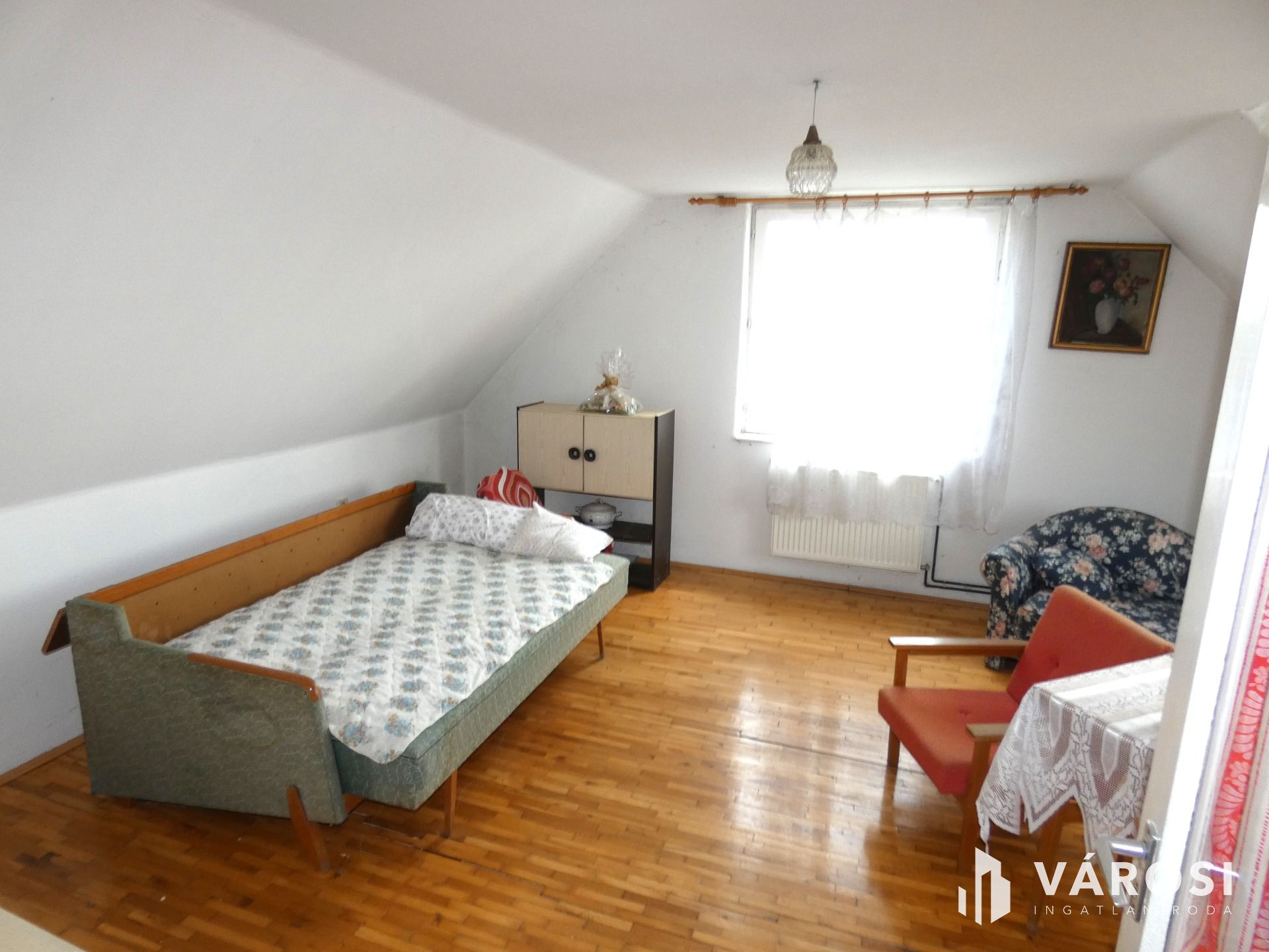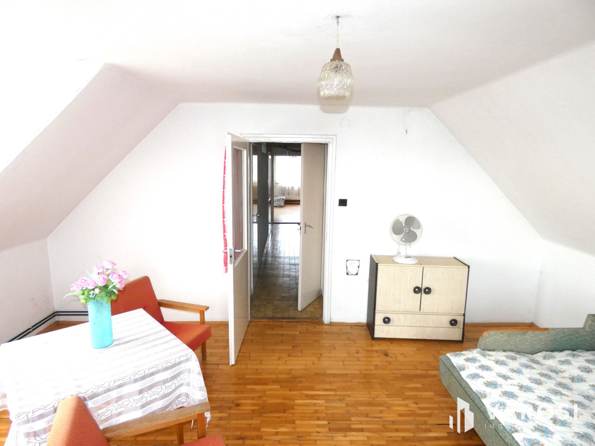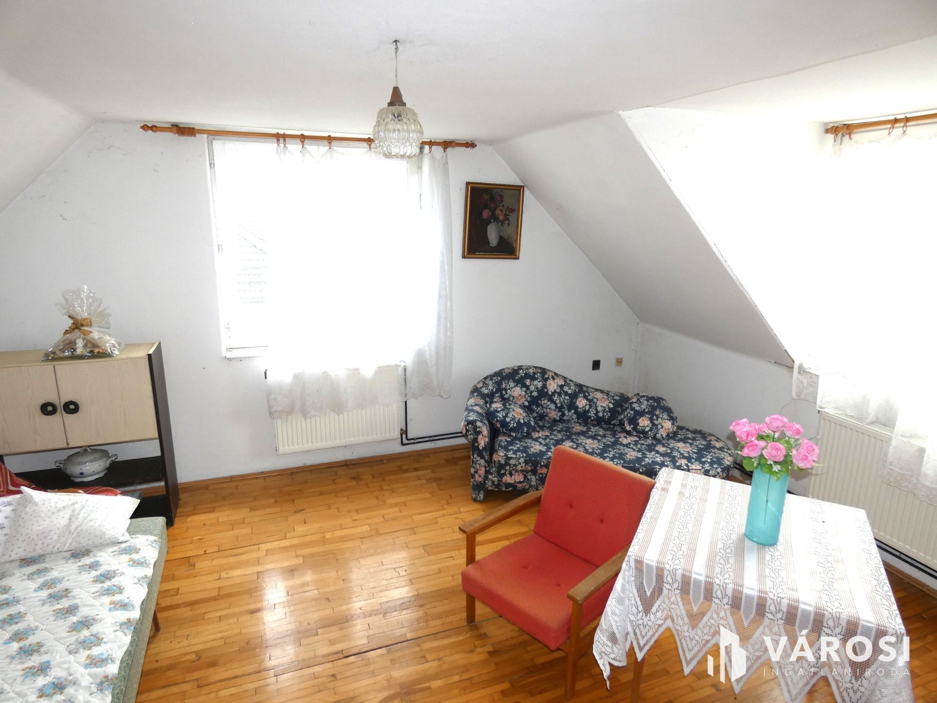 Az otthon 1 nappalival, 5 szobával és 2 fürdőszobával rendelkezik, így kényelmes életteret biztosít akár nagyobb család számára is. A két szint jól tagolt: minden szinten több szoba és egy fürdő található, a külön bejáratú helyiségek pedig megkönnyítik a családi mindennapokat (gyerekeknek, dolgozószobának, vendégszobának is ideális). A tetőtéri szobákból szép panoráma nyílik a városra és a Szent György-hegyre.