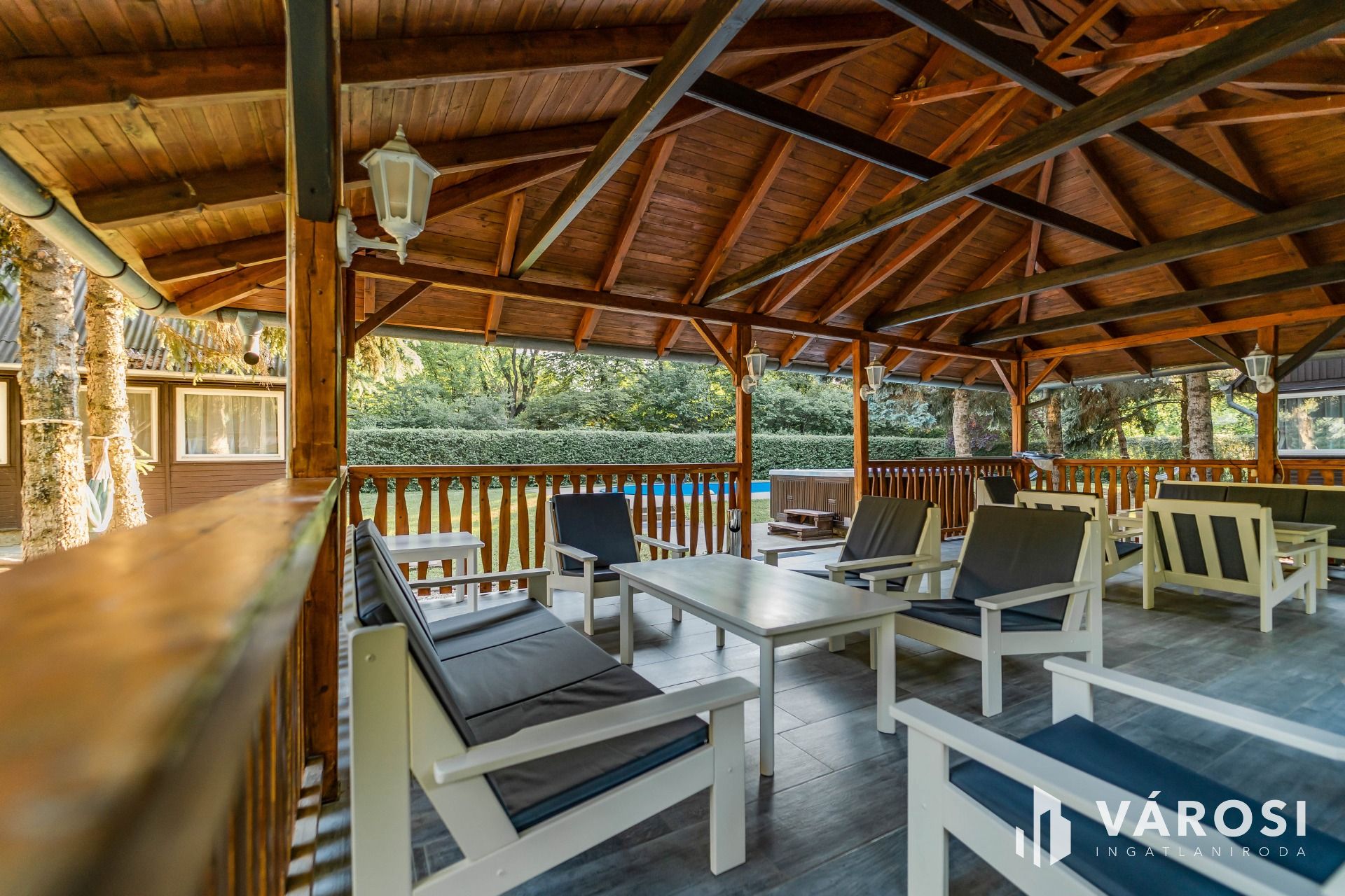 A 2089 m²-es, parkosított telken medence, jakuzzi, kemence és hangulatos kerti pihenőhelyek szolgálják a kikapcsolódást, emellett zárt parkolási lehetőség és wifi is biztosított. Az ingatlan teljes berendezéssel és kültéri tartozékokkal együtt kerül értékesítésre.