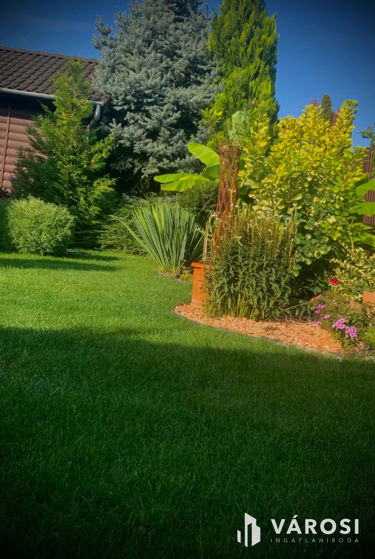 Az 565 m²-es parkosított telken egy lenyűgöző kert várja az új tulajdonost, kerti csobogóval és automata öntözőrendszerrel. A kertvilágítás varázslatos esti hangulatot teremt, míg a hatalmas 40 m2 -es terasz tökéletes helyszín pihenésre, baráti összejövetelekre. A biztonságról kamera- és riasztórendszer gondoskodik, a napvédő rolók , és szúnyoghálók pedig a kényelmet szolgálják. Minden nyílászárón sávroló található.