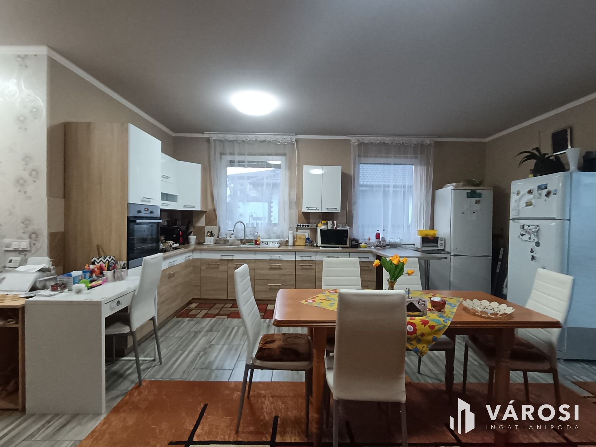 Az amerikai konyha modern és praktikus, akár közvetlenül a nappaliból is élvezhető. A külső hőszigetelésnek köszönhetően az energiaköltségek tovább csökkenthetőek.